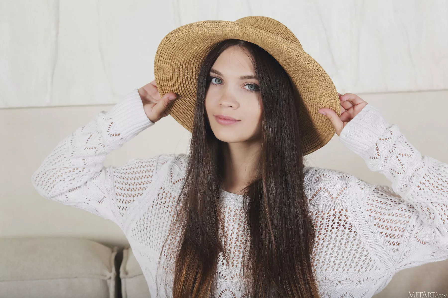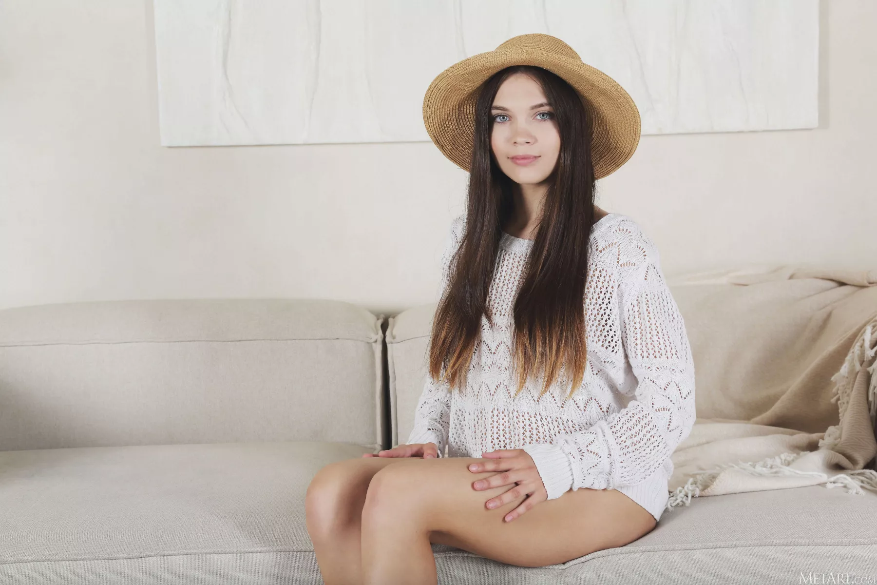 Улыбающаяся красотка на диване — Adriana Fawn